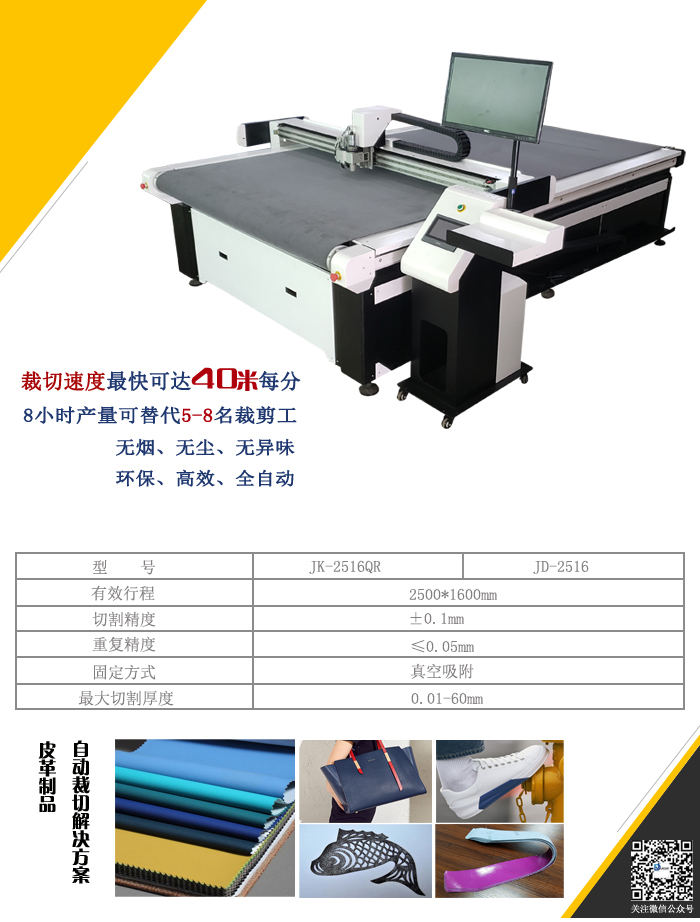 • 震動刀自動送料智能切割機集智能全自動排版、全自動傳送、智能分頁、可連續作業等技術的生產線式高效切割設備,特別適合卷狀柔性料(如人造革及各類工業用布等)的智能裁剪。適用于汽車內飾、沙發座椅等行業。